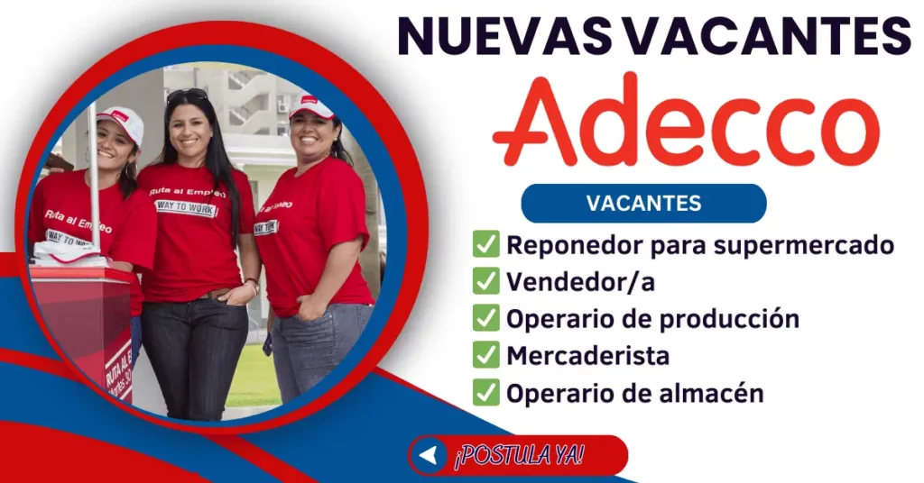 Las personas interesadas en postular a las vacantes disponibles en ADECCO lo podrán desarrollar en el siguiente enlace:
